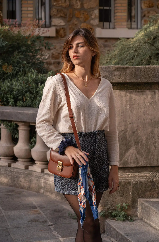 Son coloris écru lumineux apporte douceur et fraîcheur à la silhouette, tout en se mariant aisément avec des teintes plus soutenues ou naturelles. Polyvalente, la blouse Jackie se porte aussi bien seule que sous une veste, pour une allure à la fois moderne et intemporelle.