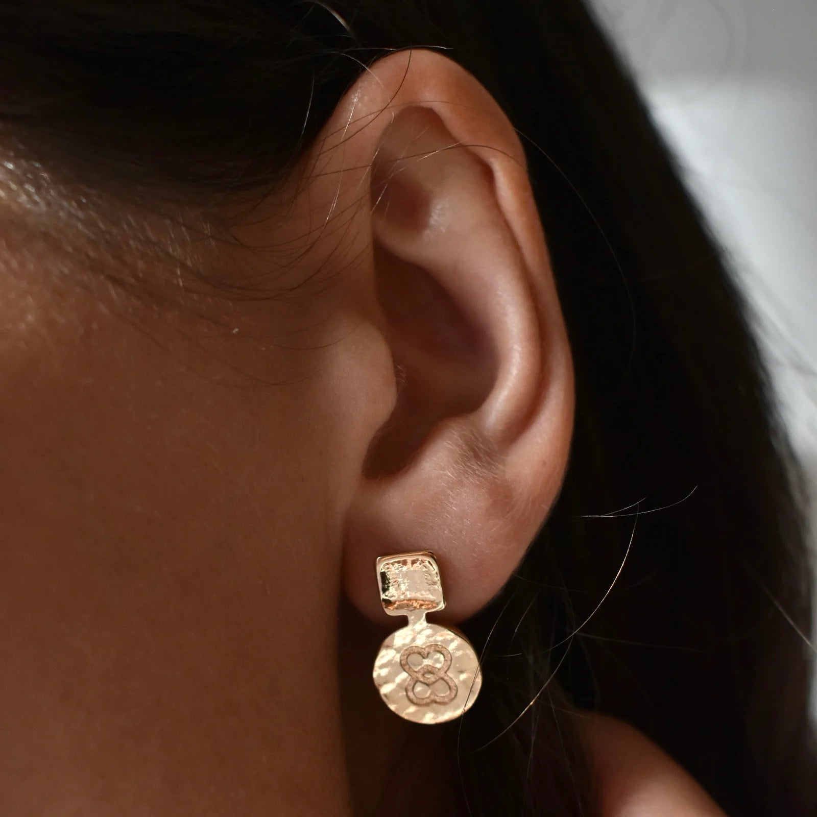 Eclipse earrings embody the perfect harmony between day and night, with their unique asymmetrical design. Each loop features a moon side and a sun side, evoking the captivating celestial eclipse. The graphic spirit of these earrings is enhanced by the presence of fine stones representing eyes, adding a touch of mystery and sparkle to this accessory.