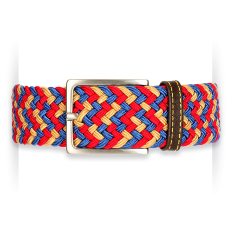 The Americano braided belt in a delicate mixture of petrol blue, beige and Bordeaux red is available at l'Habit Français. It's super stretchy and that's great.