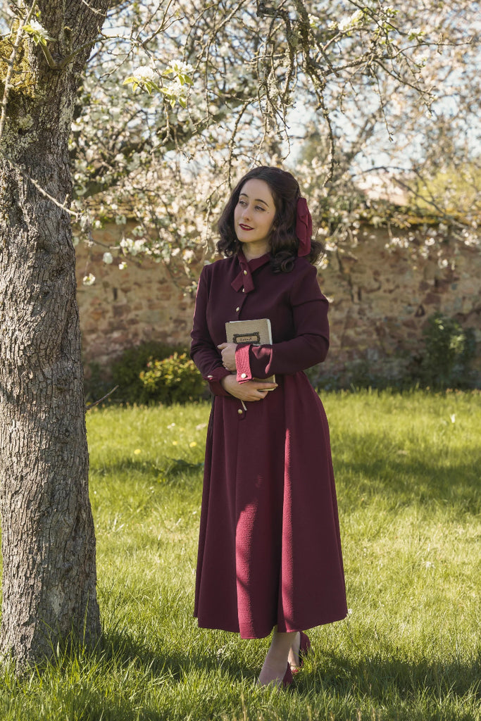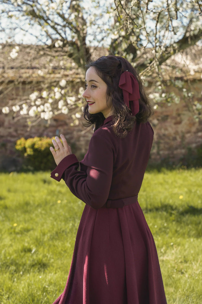 La robe Mia Bordeaux signée Audrey in Paris est une pièce féminine et intemporelle qui s’inspire des silhouettes iconiques des années 50. Elle associe un haut en maille fine Milano près du corps à un bas fluide à motifs, créant une allure élégante et raffinée.