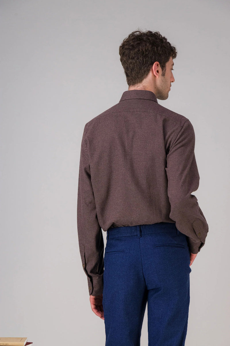 Élégante, confortable et intemporelle, la chemise en flanelle marron glacé allie chaleur et raffinement.