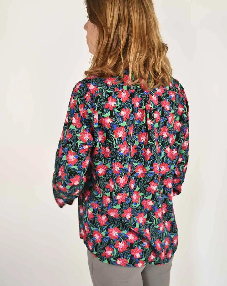 Son imprimé hibiscus aux teintes raffinées apporte une note de fraîcheur et de féminité, rehaussant les silhouettes avec discrétion. Dotée d’un col chemisier structuré, d’une patte de boutonnage et de manches longues classiques, cette chemise allie sophistication et simplicité, idéale pour enrichir un vestiaire moderne et responsable.